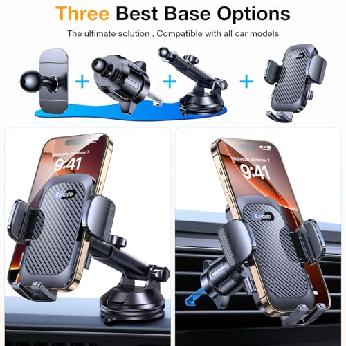 Romuto Car Phone Holder Mount【2025 Strongest Suction】 Phone Mount for Car Dash Pad Cell Phone Holders for Your Car Accessories for Women Men Dashboard/Windshield/Vent Truck Stand for iPhone Samsung