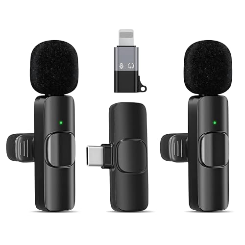 Wireless Lavalier Microphone 2-Pack – Compatible with iPhone, iPad, iOS, Android – Plug & Play Mini Mics with USB-C, Noise Reduction Lapel Mic for Video Recording, Vlogging, YouTube, TikTok