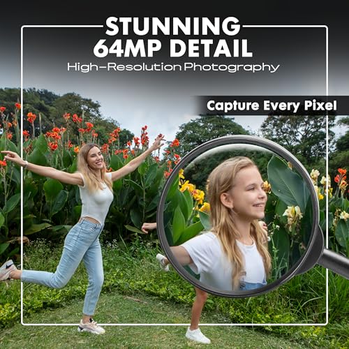 ULTRA-HIGH RESOLUTION 64MP PHOTOS: Capture striking, high-resolution photos ideal for enlargements and detailed editing. The 64MP CMOS sensor delivers lifelike detail in every shot, from portraits to landscapes.