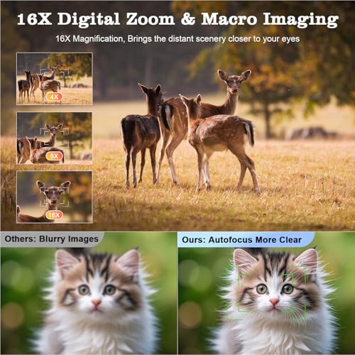 【Autofocus Digital Camera】Capture stunning 4K videos with this digital camera featuring 16X digital zoom, and built-in fill light. In photo modes output high-definition 64MP photography of 5120 * 3840 pixels, for vlogging cam offers autofocus, manual focus to choose. Built-in 1500mAh battery for safer and more convenient use, allowing you to immerse in joy of shooting and avoid power anxiety—this point and shoot camara perfect for beginners, teens, students and seniors using