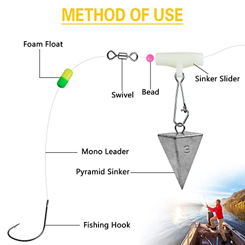 Ease to Use -The sinker slider is easy to open and lock with a snap-on design, allowing the sinker to be replaced without dismantling the rig. suitable for fresh water and salt water